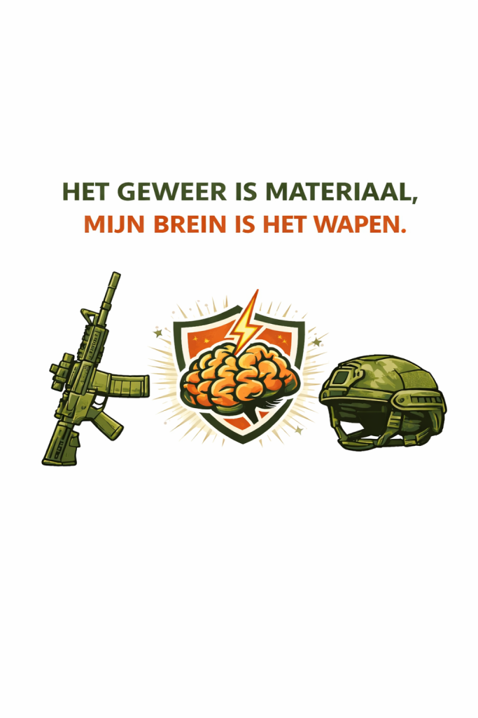 “Niet het geweer, maar mijn brein is het wapen.” Deze uitspraak komt uit het Handboek